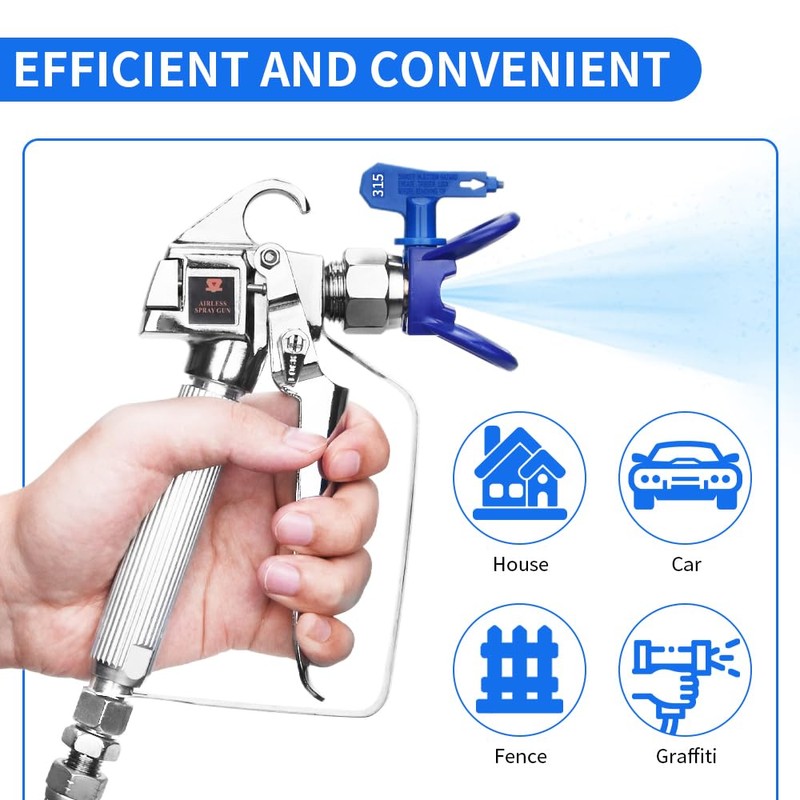 • 【Practical design】The airless sprayer tip has a reverse airless cleaning switch tip design, the spray can be quickly cleaned in a reversible position to prevent the tip from clogging, practical and effective for your work.
