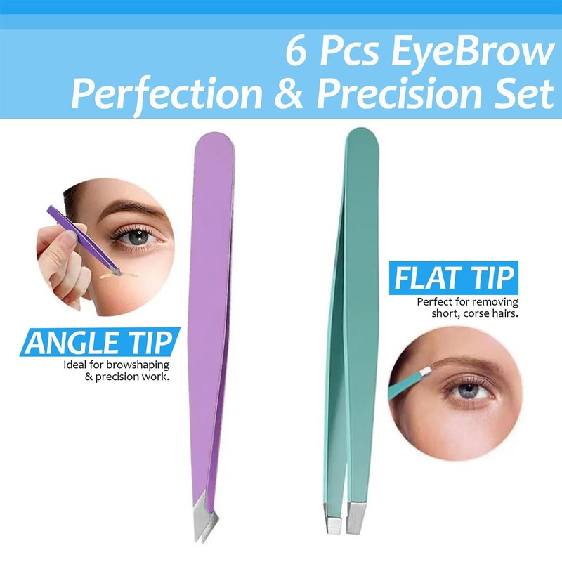 • About this item 【THE MOST VALUABLE TWEEZERS SET】You can get 6 PCS useful eyebrow grooming tools in 1 SET, including 4 x different eyebrow precision tweezers, 1 x eyebrow scissor and 1 x eyebrow brush. 1 kit to meet all your eyebrow shaping routine.