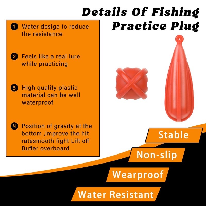 • Versatile Practice Options in Any Environment: our PVC fishing practice casting plugs cater to various training scenarios and environments. practice in your backyard, park, or by the lake without worrying about the weather. with their high-quality construction, these plugs provide consistent performance, helping you to refine your casting skills across different settings.