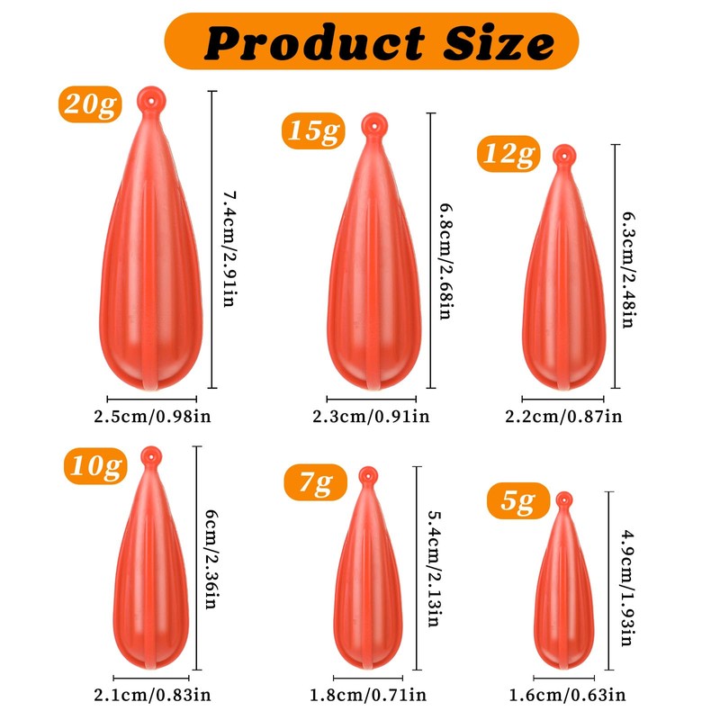 • Comprehensive Size Range for Various Casting Needs: This set includes 6 fishing practice plugs of different sizes and weights: the sizes in inches are about 2.910.98 in (20g), 26.779.06 in (15g), 24.808.66 in (12g), 23.628.27 in (10g), 21.267.09 in (7g), and 19.296.30 in (5g). with this diverse selection, you'll always have the perfect practice plug for any casting condition.