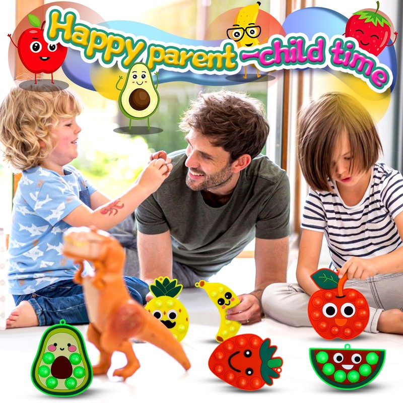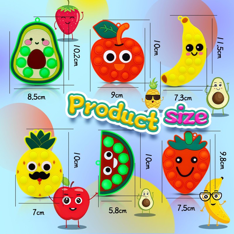 - 6pcs Fruit Bubble Fidget Toy Set - This pack includes 6 colorful fruit-shaped bubble fidget toys, perfect for kids' sensory play and stress relief. Each toy features a satisfying "pop" sound that helps improve focus and calm nerves.