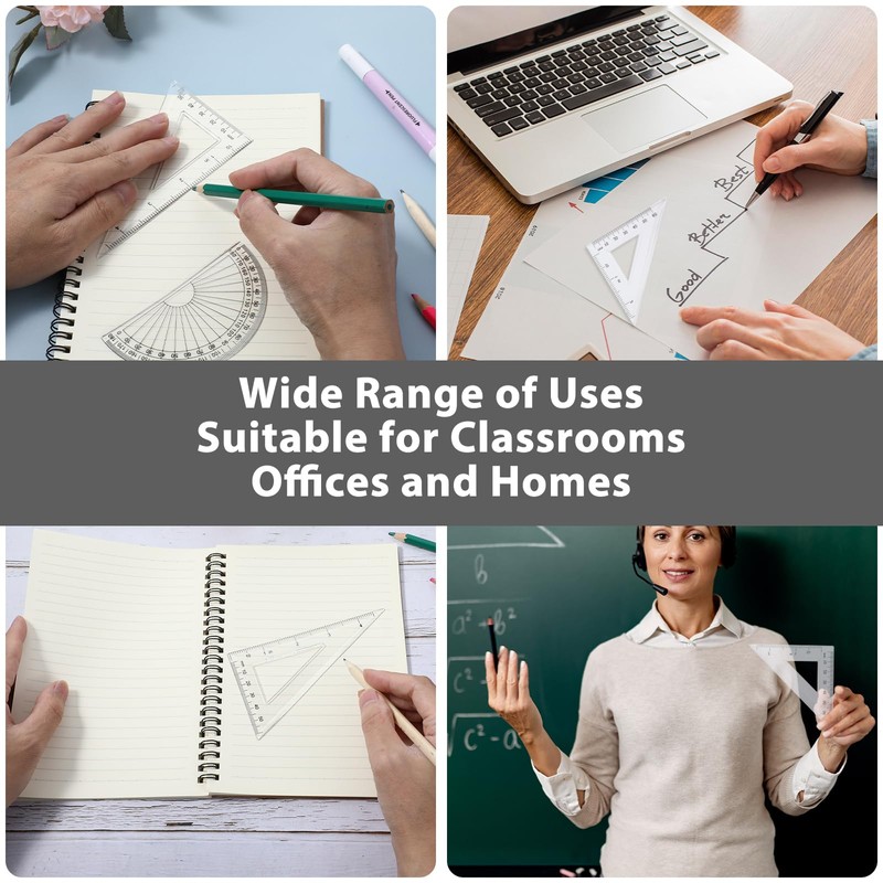 - Widely Applications: Math geometry ruler set are useful tools for students, teachers, engineers, artists, designers, architects and more. These small rulers can be used in office, school, studios and homes