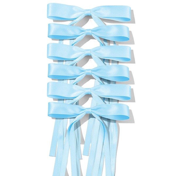 6PCS Hair Accessories for Women Girls 9.8inch Light Blue Hair Bows Long Tail Bow Hair Clip Barrettes Tassel Ribbon Bow-knot Slides Metal Alligator Clips Hairpins for Toddlers Teens