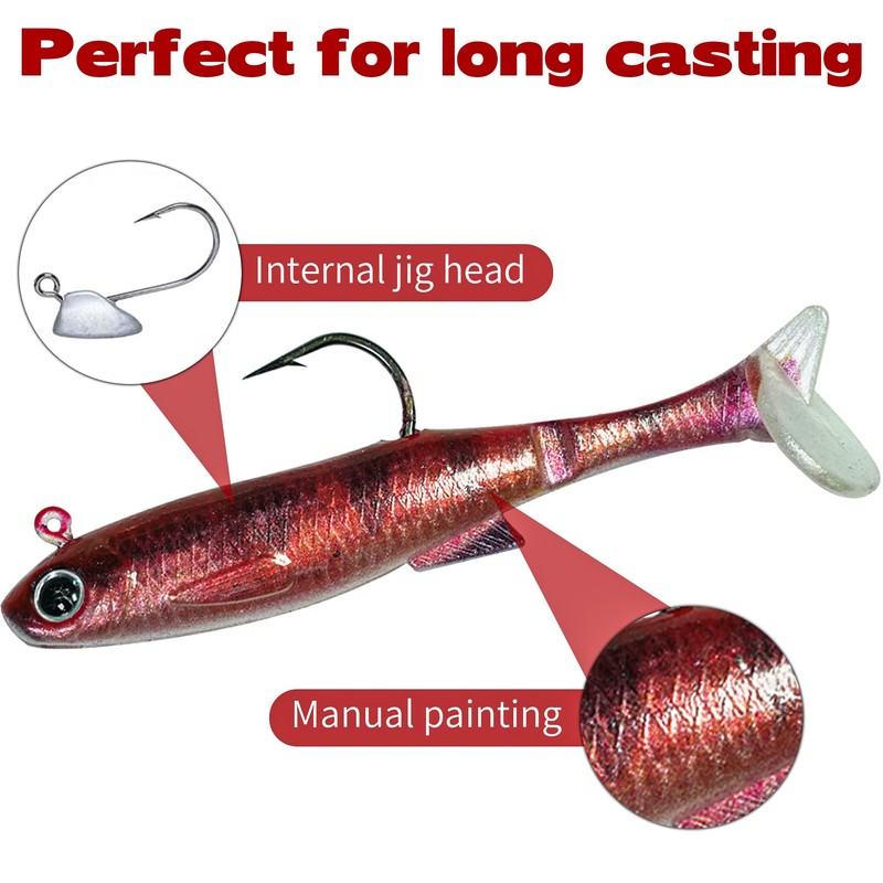 - 【PRE-RIGGED FOR CONVENIENCE】Each swimbait comes pre-rigged with a high-quality Mustad 1# jig hook and internal weight. The back hook, made from sharp high-carbon steel, is designed for superior hook-ups, while the innovative weedless feature prevents snagging, ensuring a smooth fishing experience.