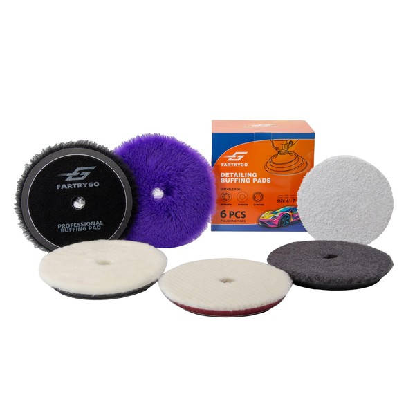 6PCS Wool Buffing Pads 6/7" – Large Size Polishing Pads for Auto Detailing – Fast Coverage for Big Surfaces – Heavy Cut & Shine Ready – DA/Rotary Compatible