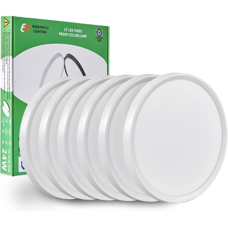 6PK 12 Inch LED Flush Mount Ceiling Light, 24W, 2520LM, 3000K/4000K/6000K CCT Selectable, Round Flat Panel Light Low Profile Ceiling Light Fitures for Hallway, Kitchen, Bedroom, Laundry Room