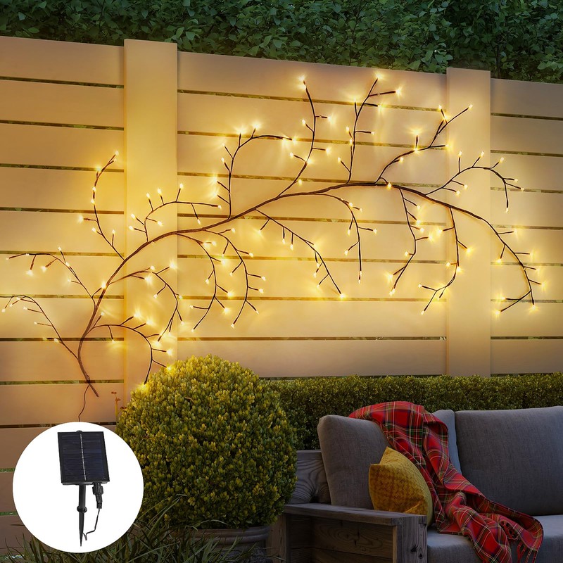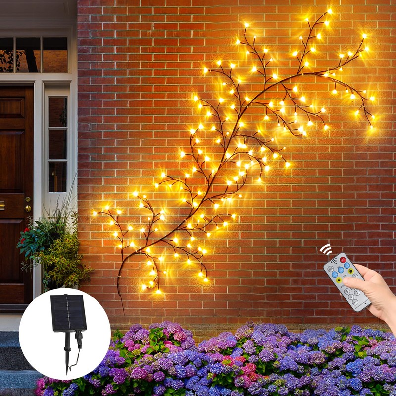 - 🌟Solar Enchanted Willow Vine Lights—— These enchanting solar lights add a magical glow to any outdoor space. Featuring a 7.8 foot string of LED lights shaped like delicate willow vines, they cast a warm shine along walls, trees or fences after dark.
