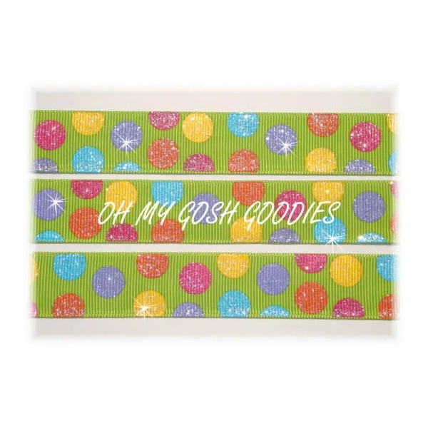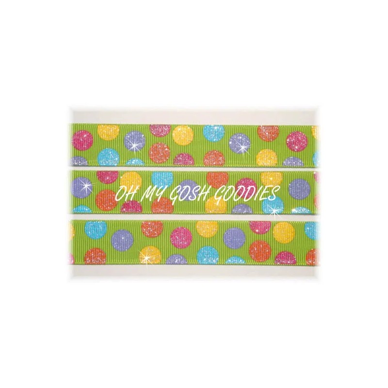 7/8 OVER THE RAINBOW TWINKLE GLITTER DOTS MULTI GROSGRAIN RIBBON 4 HAIRBOW LIME