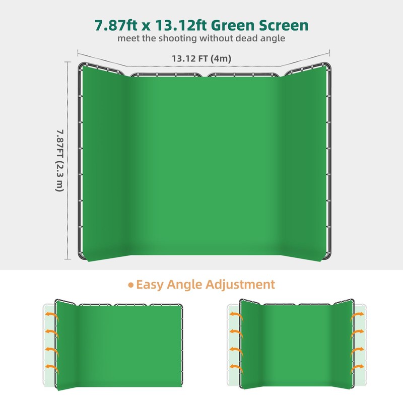 • 【Spacious Wrap-Around Design】 A large 7.87ft x 13.12ft frame provides ample space for group photos, larger scenes, or multi-person setups. Its versatile design allows you to create various shapes as needed while ensuring seamless, no-dead-angle shooting.