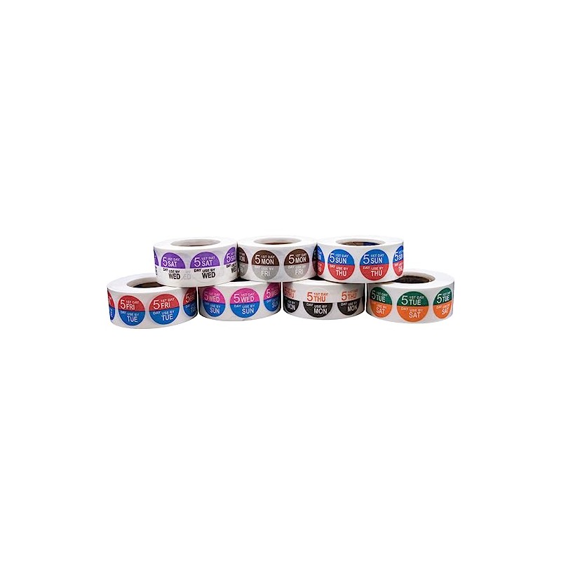 7 Day of The Week Dissolvable 3/4" Inch Round Labels Bulk Pack 3,500 Total Labels