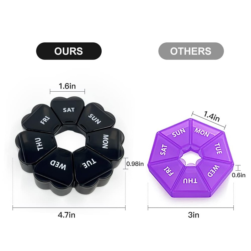 - Pill box 7 days - There are a total of 7 separate pill cases to avoid confusion. One box a day, then you will not forget to take pills, this is really easy to carry