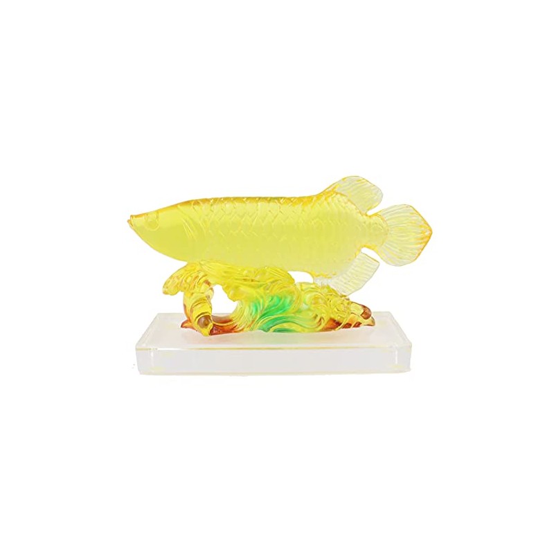 - The overall dimension of this Yellow Arowana Fish Statue on Glass Base is approx. 7"(L) x 2.375"(W) x 5"(H).