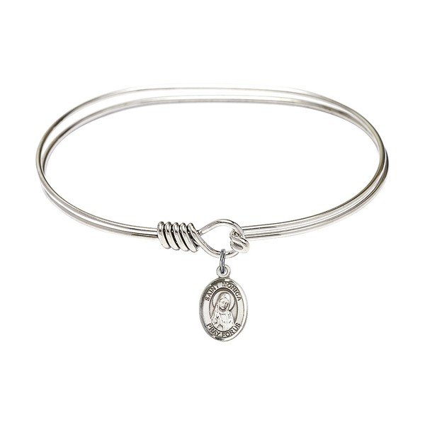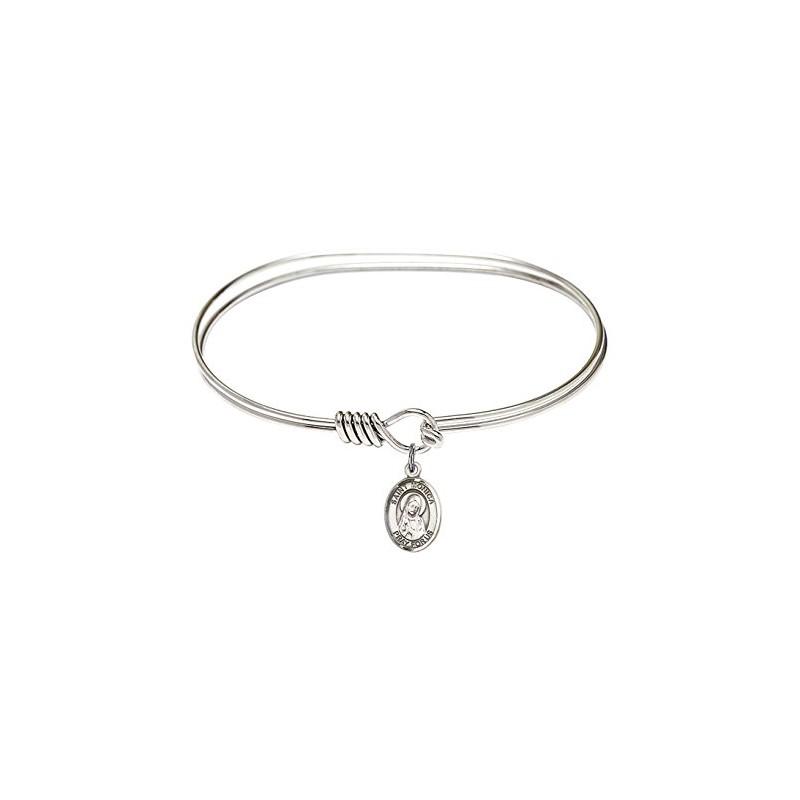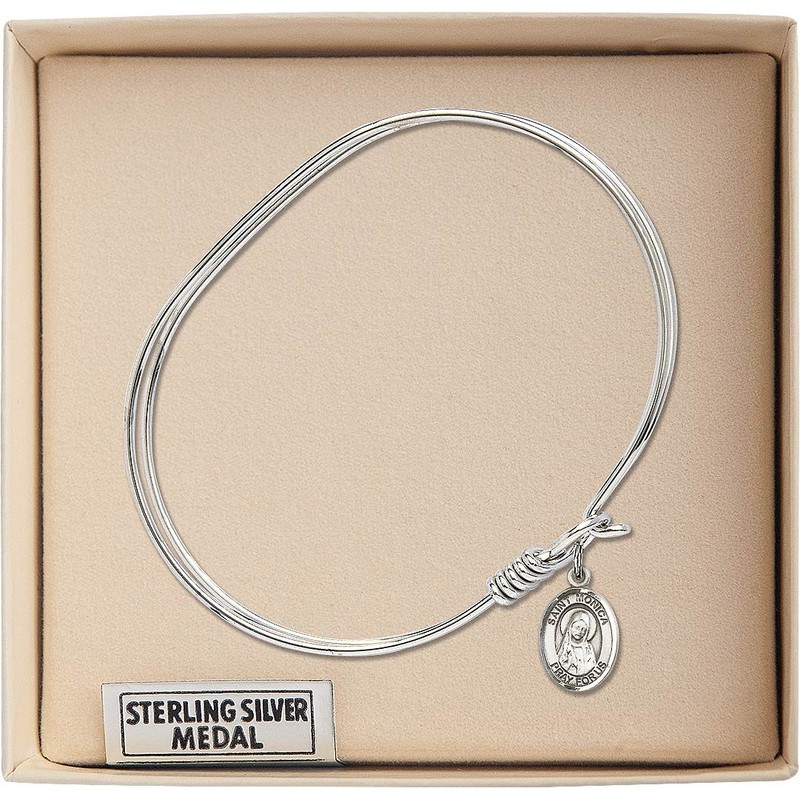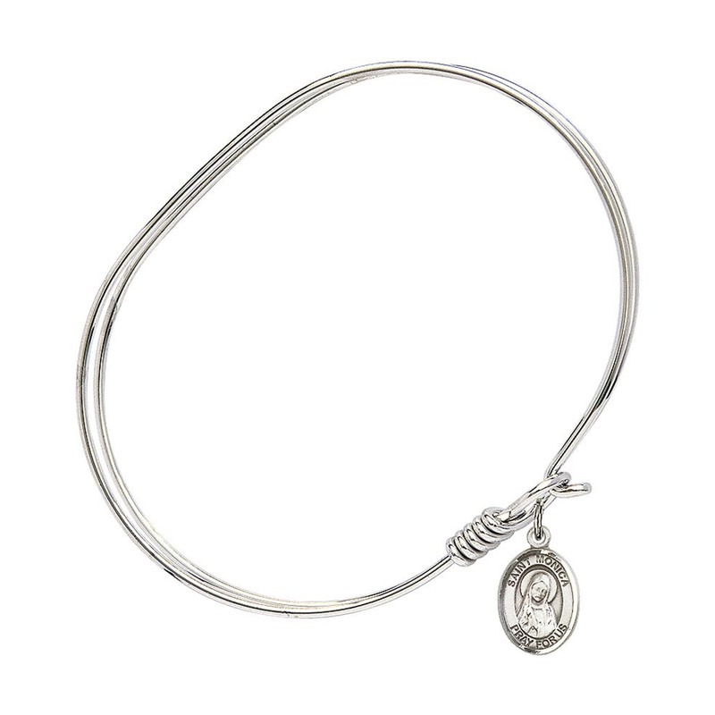 - 7 inch Oval Eye Hook Bangle Bracelet with a St. Monica charm.