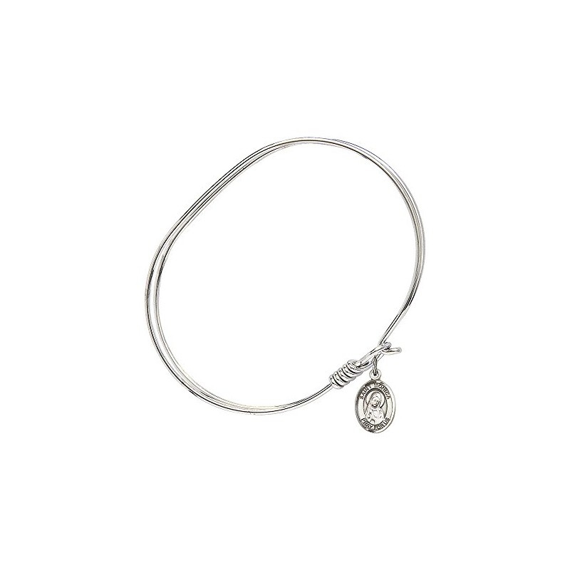 7 inch Oval Eye Hook Bangle Bracelet w/St. Monica in Sterling Silver