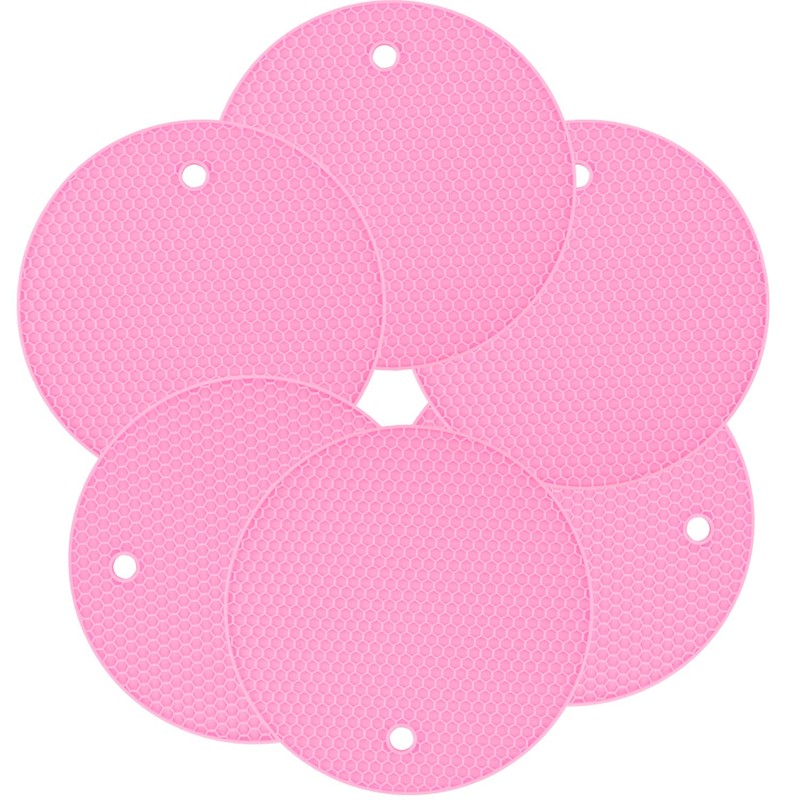 7" Inch Premium Thick Silicone Trivet Honeycomb Multi-Mat, Non-Stick Heat Resistant, Dishwasher Safe, Splatter Guard, Drying Mat, Protect From Spill Overs, Trivet, Jar Opener, Hot Pad - 6 Pack (Pink)