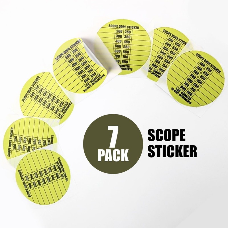 7 Pack Scope DOPE Sticker for Long-Range Shooting- Rifle Scope Sticker Can Be Used with Range Card and Dope Cards for Shooting -1.5 Inch Diameter- Fits Most Scope Caps - Made in The USA - Neon Yellow