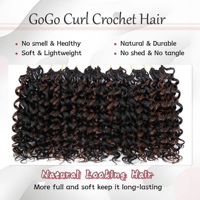 - Advantages:Gogo Curl Crochet Hair is with bouncy beach curl water wave crochet hair style, super soft and smooth, durable & natural texture, comfortable to Wear. Hand-made & Individually Pre-Looped, easy to install, especially for beginners
