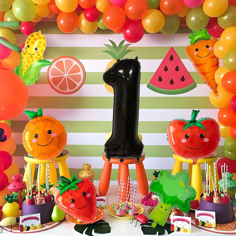 - 【Fruit Party Decorations Ballons】The Package comes with a total of a 40-inch "1" balloon, a 30*20-inch strawberry, a corn, and a tomato balloons, citrus balloon, a broccoli balloon,a carrot balloon and come with 1 pcs white ribbons and 1 blow-up straw.This balloon has a beautiful design and a chic shape, which can instantly enhance the style of the party scene and bring you and your guests a pleasant visual enjoyment.