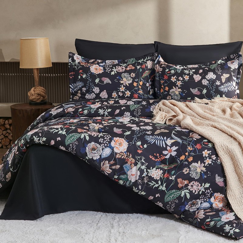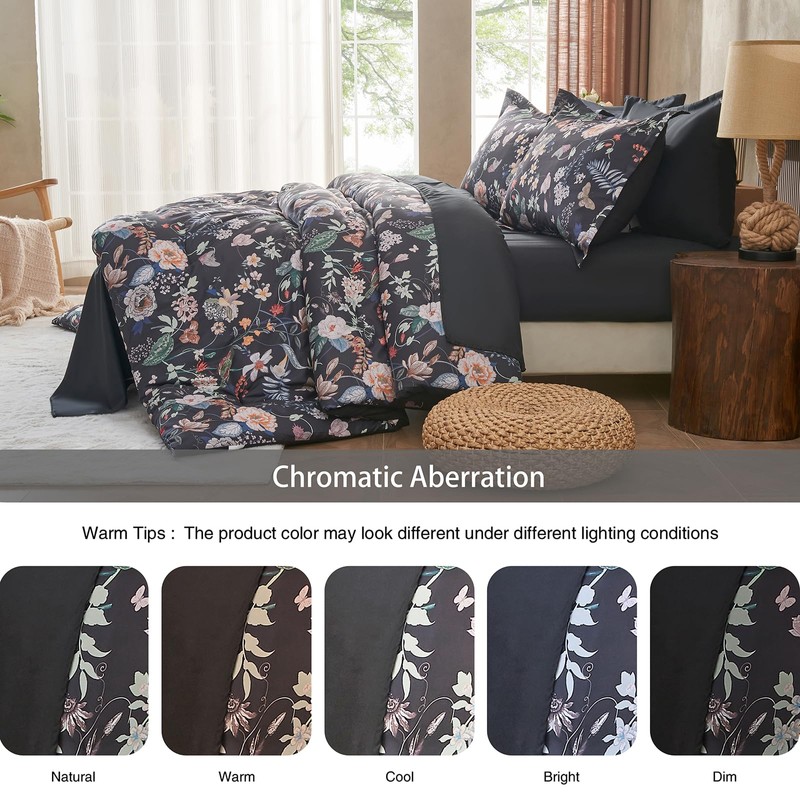 - Elegant Floral Farmhouse Design: Our Black floral queen size comforter set, framed by vibrant printing flower-and-Butterfly patterns brings a breath of spring for any season, create a calming, botanical atmosphere, enhancing sleep and relaxation