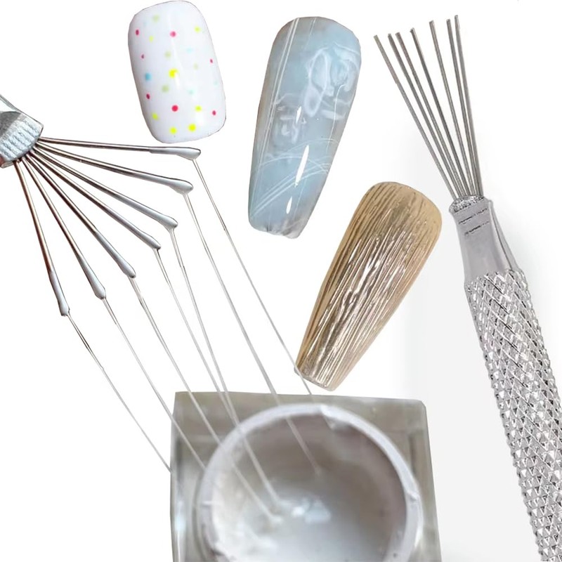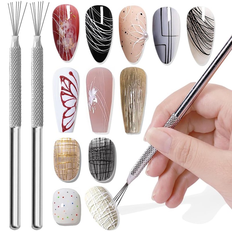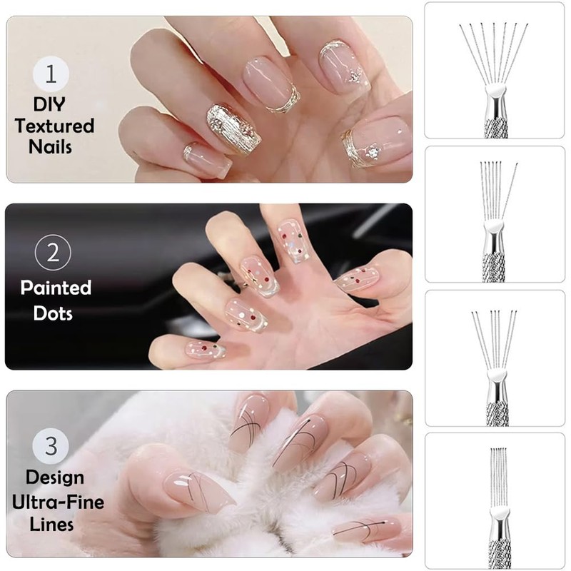 - 【Nail Liner Brush Nail Art Pens】This manicure liner brush is also perfect for drawing fine lines, with each tip measuring less than 0.5 mm in diameter, makes it easy to create ultra-fine lines, each needle can be bent as much or as little as you want to achieve the desired number of lines