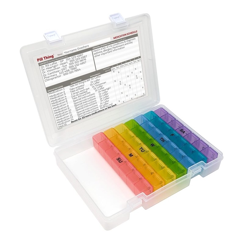7 Times a Day Weekly Pill Box Organizer Case, Secure 7X Pillbox with Medication Schedule, Includes Premium Lifetime Subscription to Medisafe App (7 Time-a-Day)