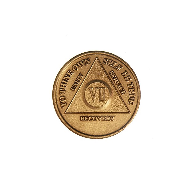 7 Year AA Medallion Traditional Bronze Raised Center Sobriety Chip