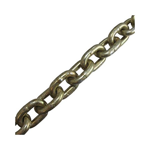 Size: 3/8"Priced By The Foot, Cut To One Continuous PieceFull Pail: 66'Material: Hardened SteelFinish: Yellow ChromateGrade: 70Safe Work Load: 6,600 lbs.This Chain Is Approximately 60% Stronger Than Grade 30 ChainCommonly Used for Binding Loads, Tie Downs And Towing ApplicationsYellow Chromate Zinc Coating For Extra Corrosion Resistance To Elements And DurabilityNot Intended For Overhead Lifting