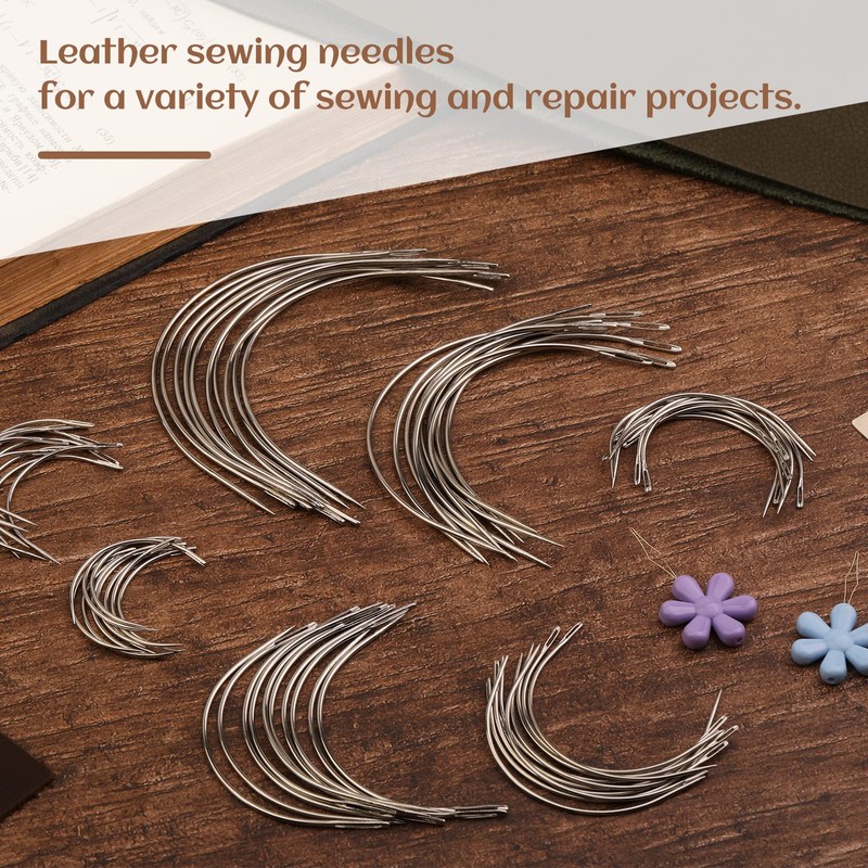 - Widely Applications: Multiple sizes and quantities of curved sewing needles allow us to have more choices and apply to more scenarios such as leather repair, hand sewing, upholstery, wig making, car seats, tents, etc.