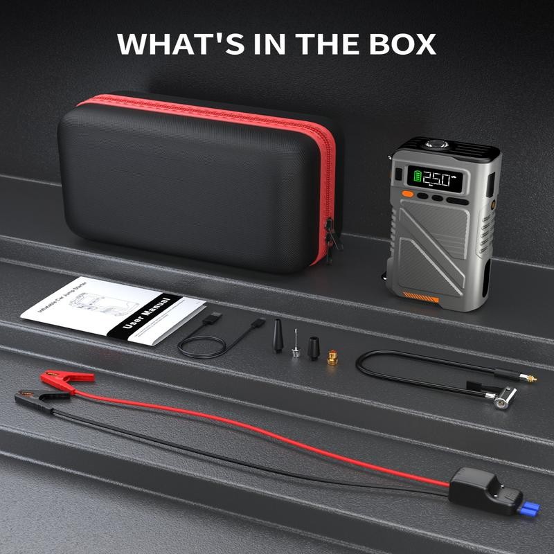 7000A【5 and 1 Multifunctional】Portable starter with air pump, car battery portable starter power box for ALL gas, 10.0L diesel, 150PSI tire inflation combination, 12V lithium battery starter power pack, starter power battery pack air compressor