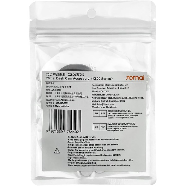 - Dash Cam 70mai Accessory can only be used for your Dash Cam 70mai. This well-functioning package is designed perfectly for your Dash Cam Omni X800 70mai. (Kind reminder: for those who have no clarity about the Dash Cam model, please kindly confirm with our team before purchasing)