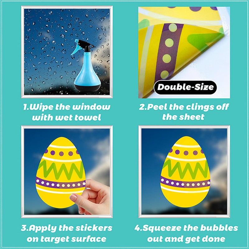 - Easy to Use and Reusable: Our lovely Easter window stickers are made of transparent electrostatic film, which uses the electrostatic adsorption principle to stick to your windows without many glue.