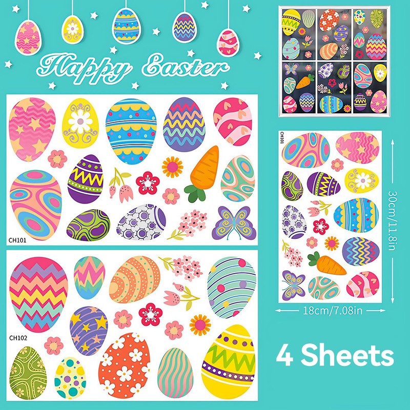 - These removable window stickers with colorful eggs and flowers pattern add more holiday and cheerful atmosphere, which is not only great decorations for Easter but also good gifts for children or friends.