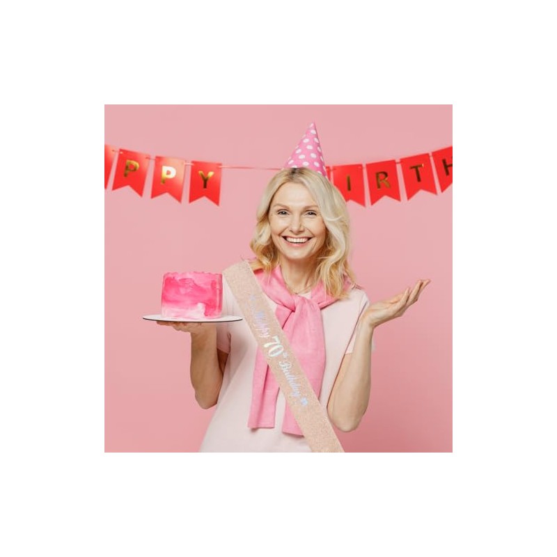 - 【What You Will Get】1pcs rose gold "happy 70th birthday"sash & a pin;great for girl's 70th birthday decor;