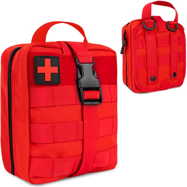 72 HRS IFAK Molle Trauma Kit, Deluxe Kit - First Aid Kit for Camping, IFAK Pouch, Molle First Aid Kit, Military Tactical First Aid Kit (Red)