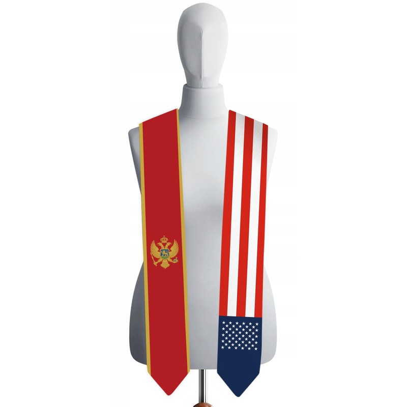 72 Inch Montenegro Flag and USA Flag Graduation Sash Unisex Adults Graduation Stole Scarf International Class of 2024 (Not Include Baccalaureate Gown and Hat)
