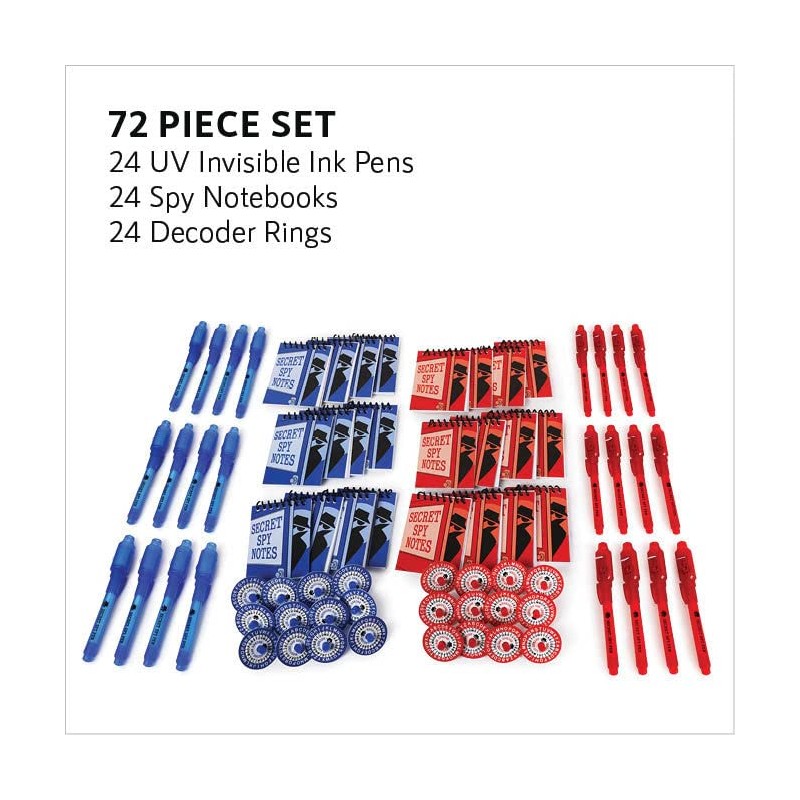 72 Piece Set - 24 Invisible Ink Pens, 24 Decoder Rings and 24 Spy Notebooks - Birthday Party Favors, Escape The Room Supplies, UV Pens With Disappearing Ink - For Kids Goodie Bags End Of Year Gifts