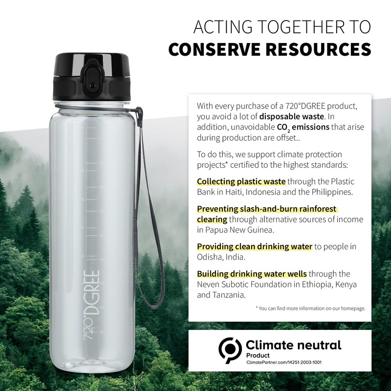 - You can finally drink enough and feel better: you’ll want your special 720°DGREE drinking bottle with you all the time as the innovative anti-choke drink opening allows you to quench your thirst really quickly. Refine your drinks with refreshing fruits or ice cubes – thanks to the extra fruit infuser container and large opening (diameter 5.5 cm). Made from featherlight, durable Tritan copolyester: naturally free from BPA (Bisphenol-A), BPS (Bisphenol-S) & phthalates. 100% pure taste.