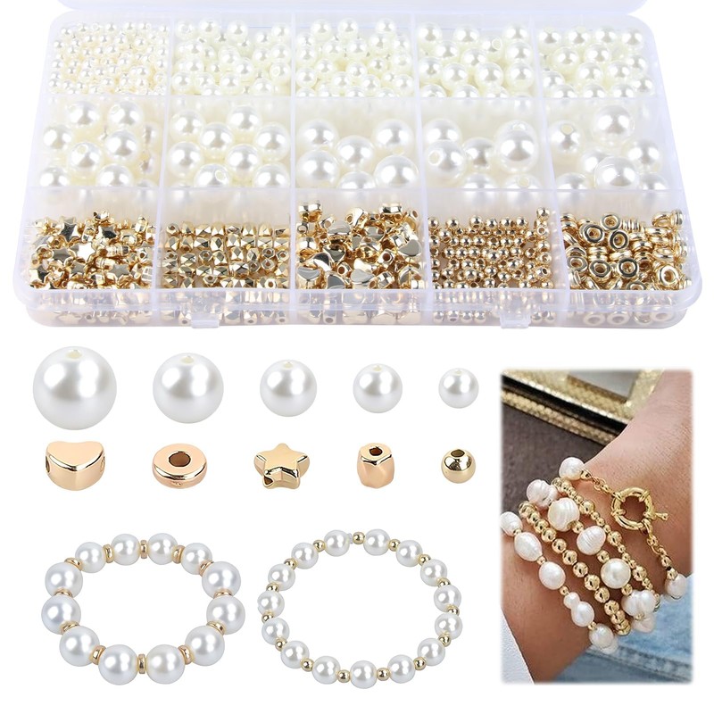 - Versatile set: contains approx. 500 beads and 220 golden beads in different sizes and styles, including round flat spacer beads, heart-shaped spacer beads and star spacer beads.
