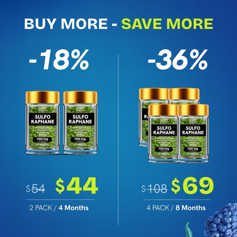 Reduce brain fog and promote focus and calm with our Sulforaphane supplement, helping you stay clear-headed and conquer your day.