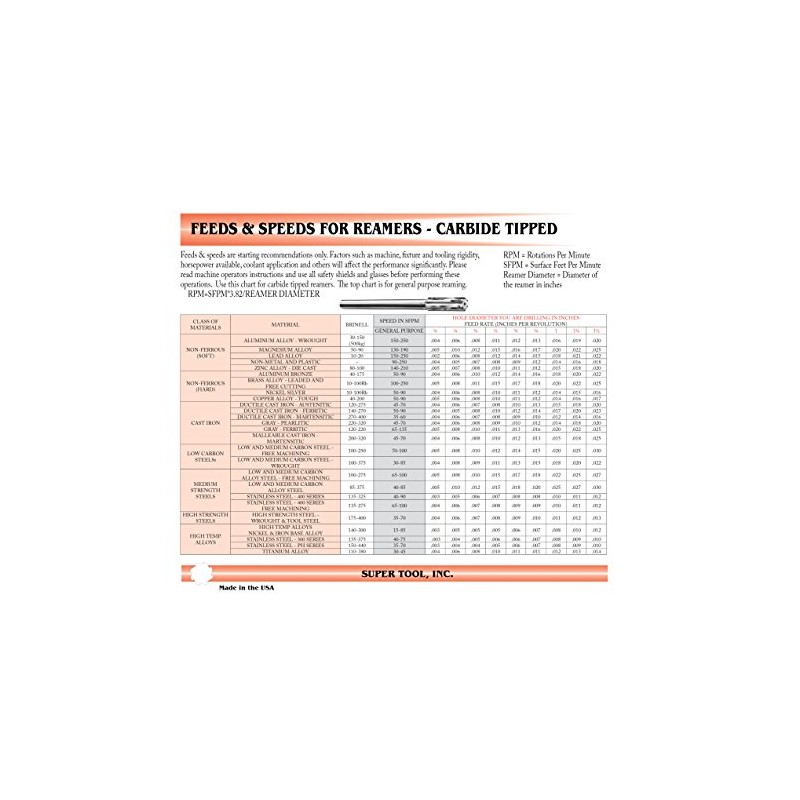 - 0.743" diameter (+.0003" /-0" ) carbide tipped chucking reamer