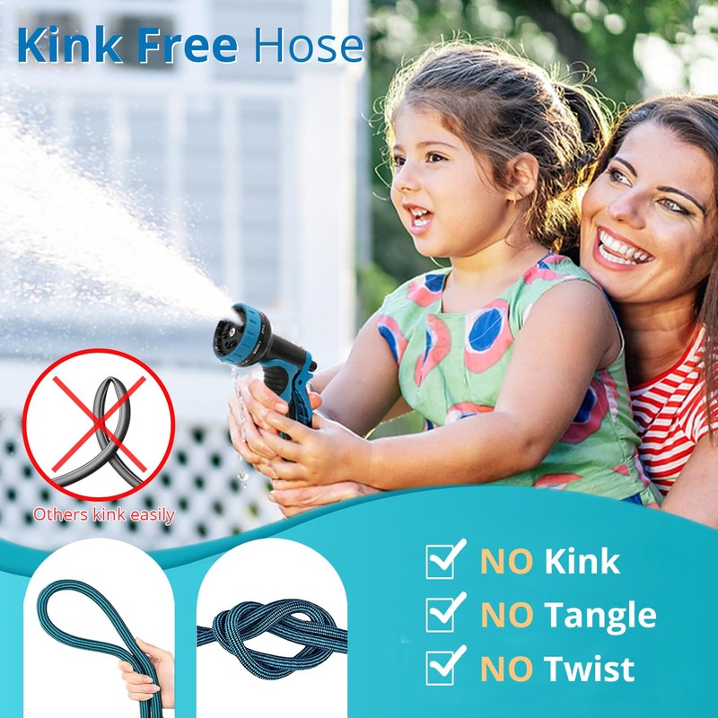 - FLEXIBLE & NO KINK - Due to the innovative structure design, the fabric hose is very flexible, thus to realize no kink, no tangle, no twist during normal usage, bringing an excellent gardening or washing life experience in the garden, lawn, patio, house and outdoor.