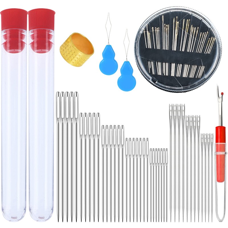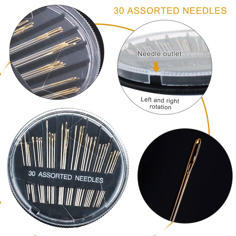 • 【Package】:You will receive 30*assorted sewing needles, 30*large eye needles,12*self threading needles, 2*sewing needle container, 2*gourd needle threader, 1*thread remover and 1*sewing thimble.