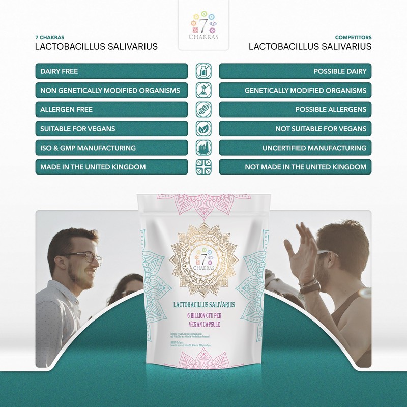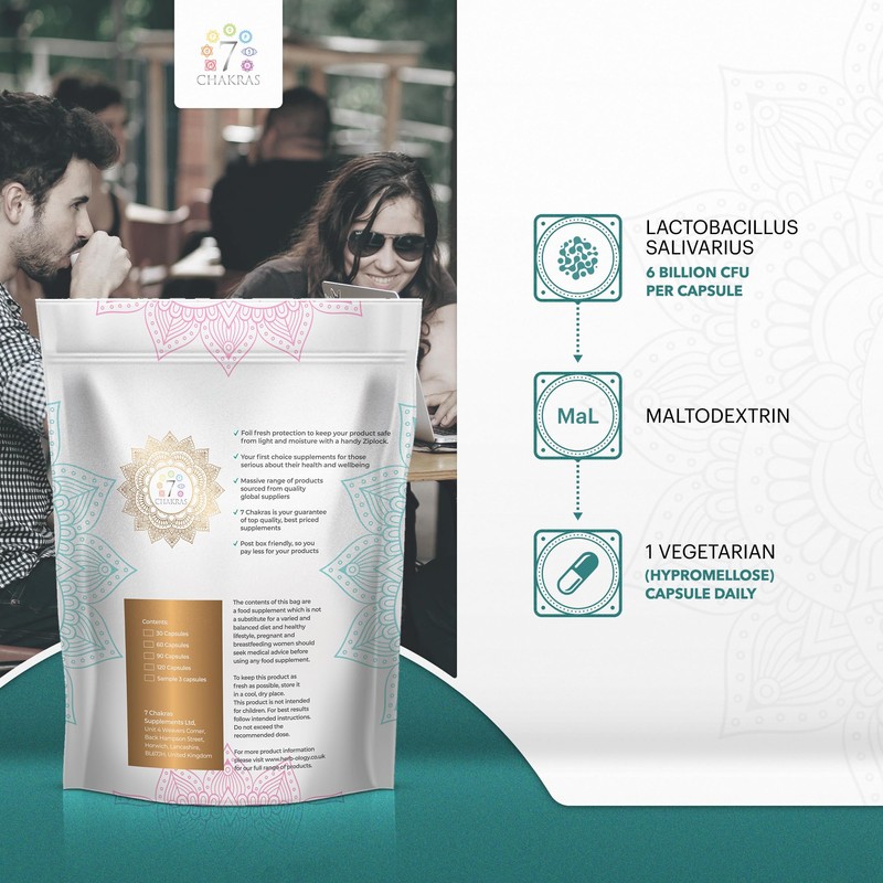 - 7 CHAKRAS, THE RIGHT SUPPLEMENTS FOR YOU - Our L-Salivarius capsules are suitable for vegans & vegetarians, gluten, dairy and allergen free.