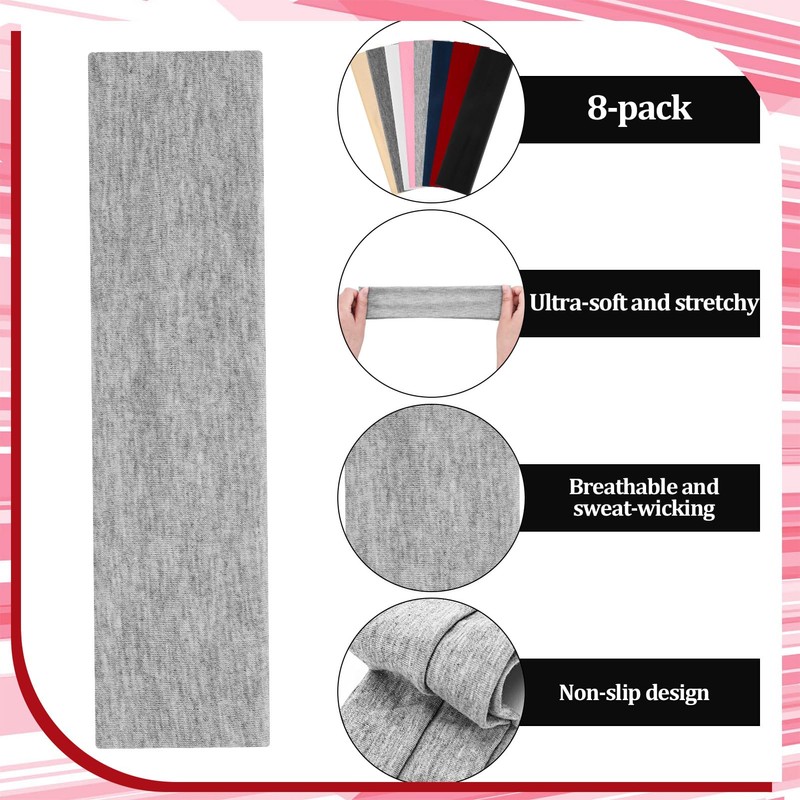 7cm Wide Headbands for Women's Hair 8 pack Sports Running Headband Non Slip for Women Men Elastic Sweat Bands Soft Fabric Hair Bands for Workout,Makeup, Yoga 2