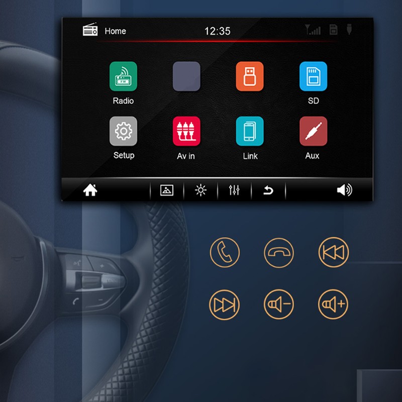 1、7in 2 DIN TFT Player has AUX function, Video output function, and Bluetooth function. 2、Supports card reading, U disk reading(audio / video), more convenient. 3、Exclusive support for IOS X-R interconnect function. RCA audio output can be connected to subwoofer. 4、Supports reversing image, brake prompt, and steering wheel control, safer and practical when driving. 5、Support audio formats of MP3/WMA/WAV/APE/FLAC, and video formats of AVI/MP4/RM/RMVB/MKV/3GP. 6、800 x 480 resolution will provide you clear image, supporting for Android /for IOS.