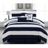 7pc. Microfiber Nautical Themed Comforter Set, Navy Blue and White Striped Full, Queen, and King Sizes (Cal King)