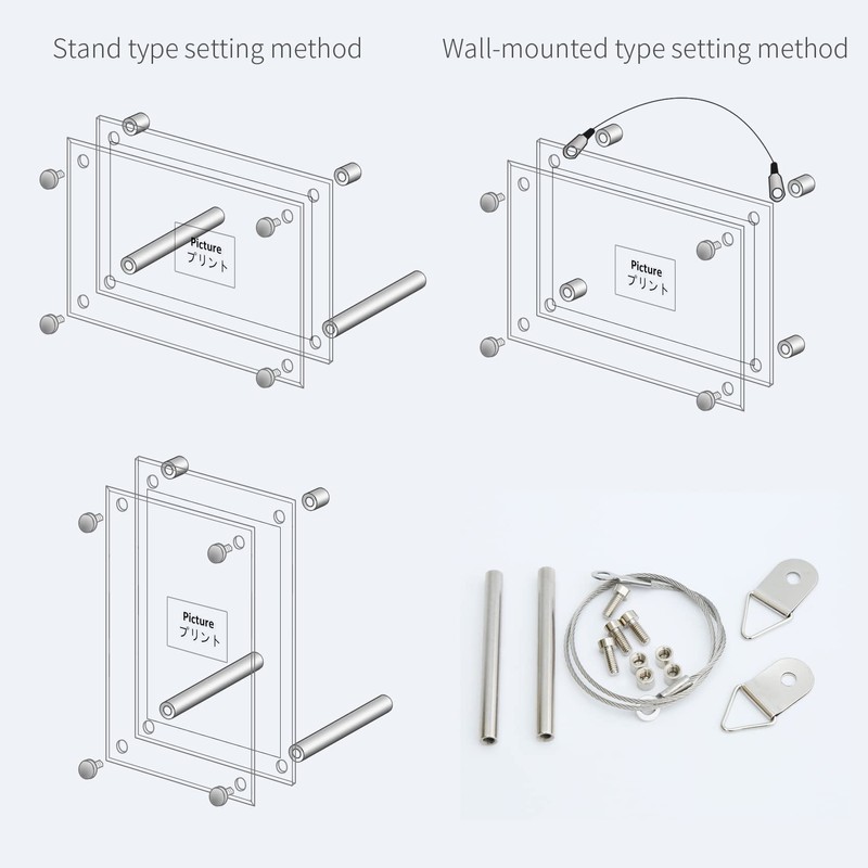 Designed for multi-display versatility, the 8 1/2 by 11 frame can be used in portrait or landscape orientation, placed on a desktop or table, or hung easily on the wall with the included hardware and string. Whether standing freely or floating beautifully on the wall, it creates a clean, frameless look that draws attention to what matters most—your content.