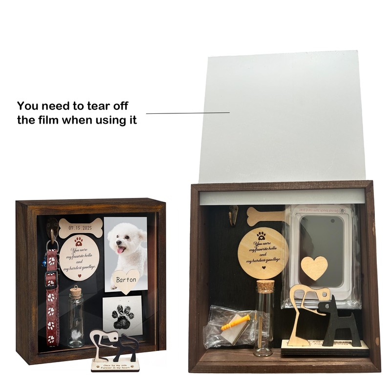 - UNIQUE MEMORIAL COLLECTION: This comprehensive dog memorial frame set includes everything you need to honor your beloved pet. From a dedicated collar holder for storing your pet's collar, to a photo frame for displaying cherished pictures, plus a paw print kit for capturing precious memories - each component is thoughtfully designed to help you preserve the beautiful moments shared with your furry companion.