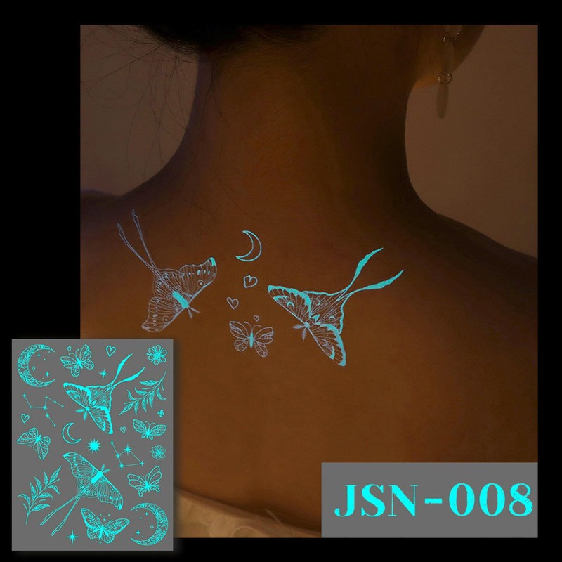 8 Blätter weiße temporäre Tattoos für Frauen, im Dunkeln leuchtende Blumen- und Schmetterlings-Gefälschte Tattoos, wasserdichte, langlebige Party-Körperkunst-Aufkleber