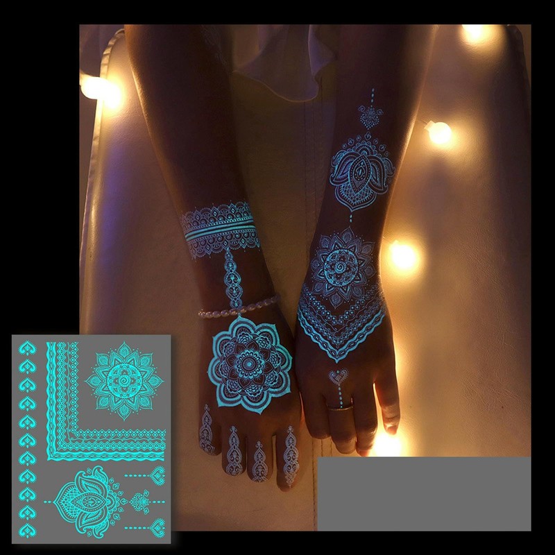 8 Blätter weiße temporäre Tattoos für Frauen, im Dunkeln leuchtende Blumen- u...